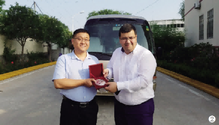 集团董事长邵辉向乌兹别克斯坦国家道路交通建设委员会主席赠送上合峰会纪念品