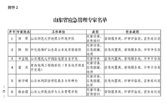 关于公布山东省应急管理专家名单的通知